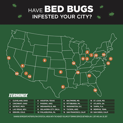 top 20 bed bug-infested cities in America, based on service requests the