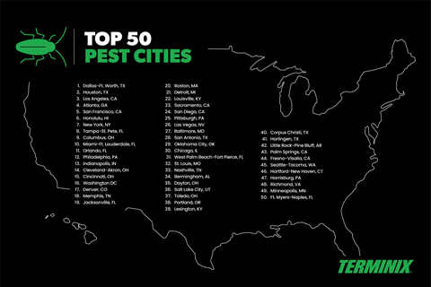 Terminix® releases its list of the top 50 pest-infested cities for commercial spaces across the U.S. (Graphic: Business Wire)